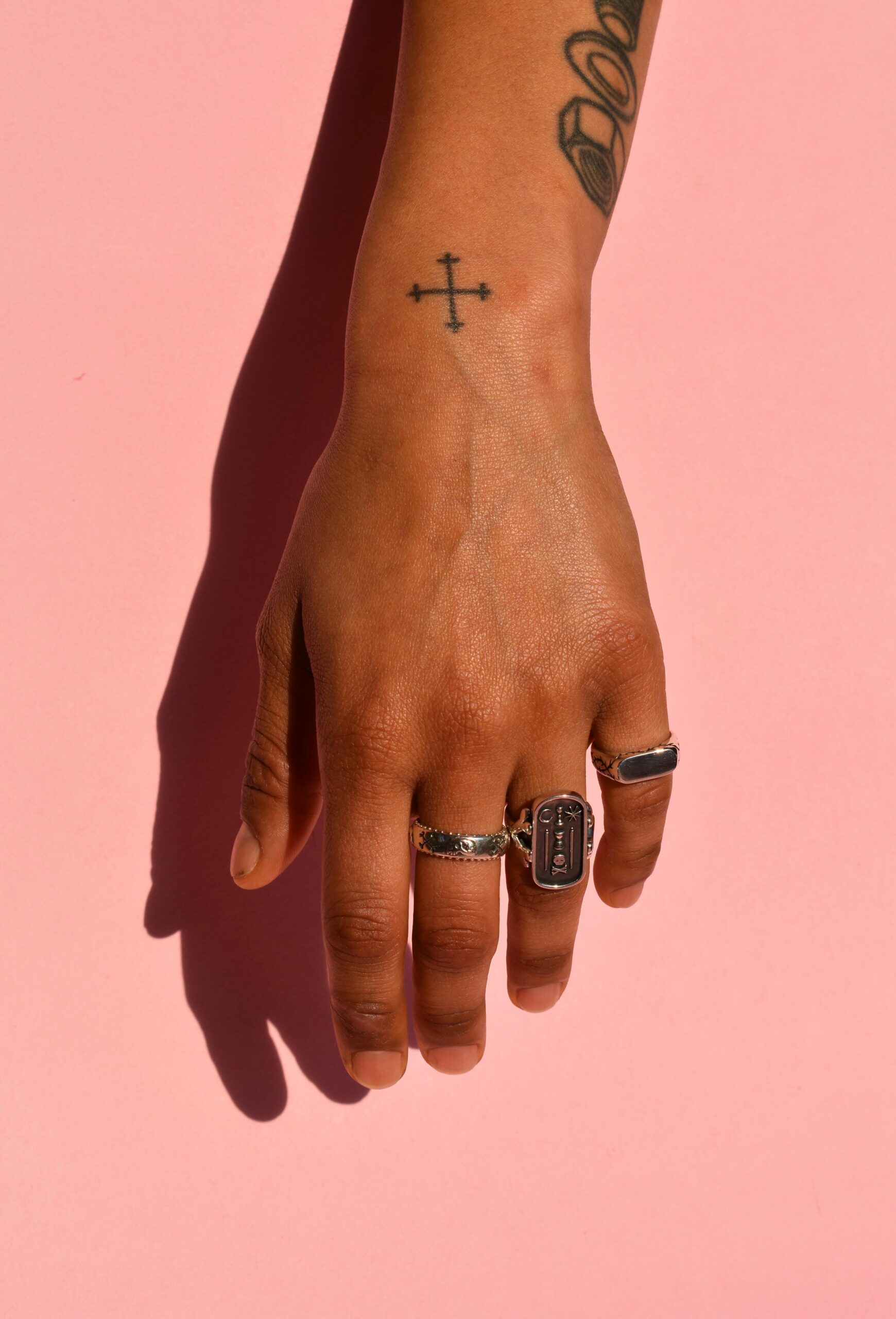 The symbols all represent a part of Memento Mori, a reminder to live life fully and without fear of our fate.