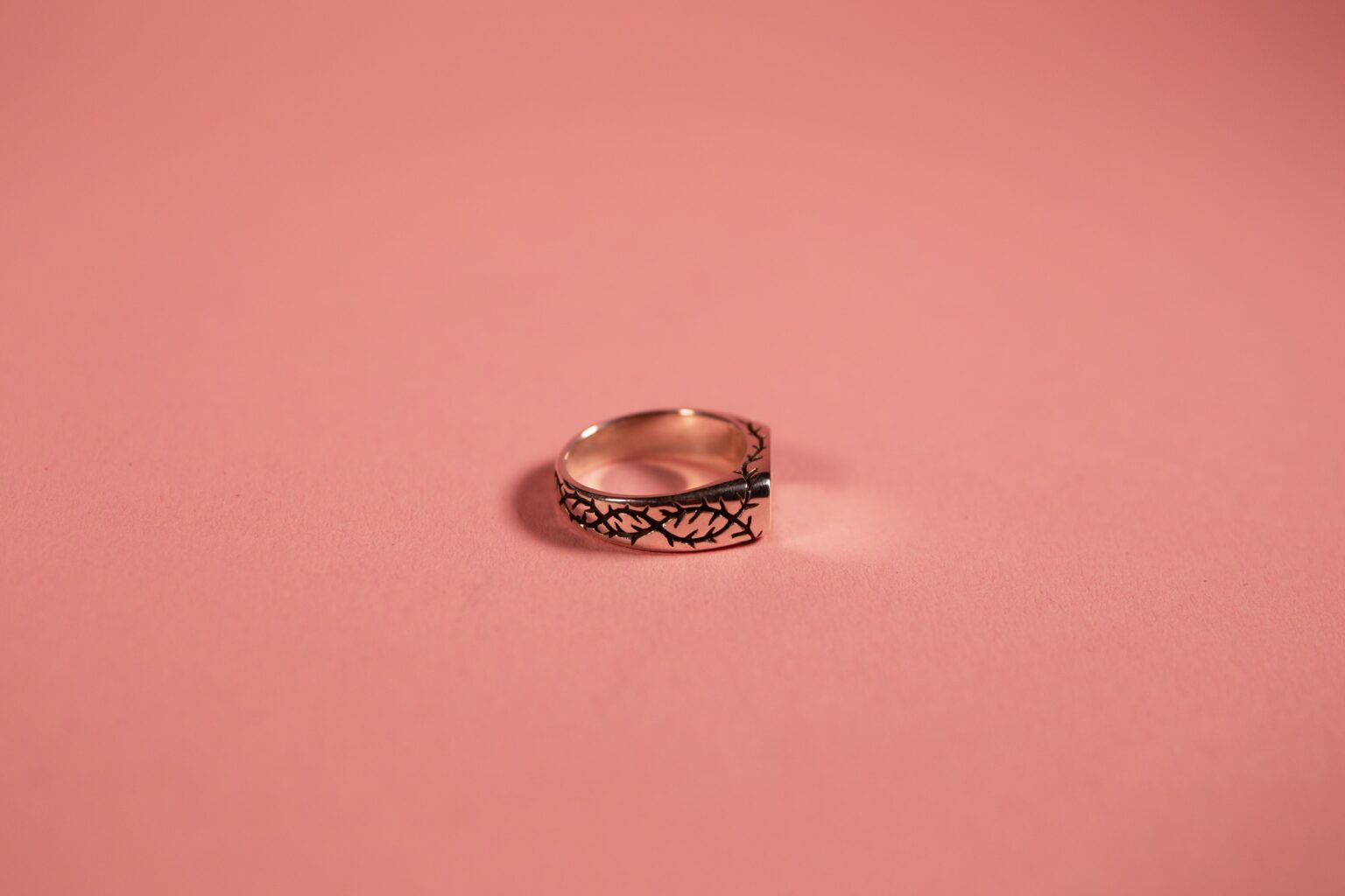 There’s nothing like a classic signet ring, it is truly always in style. Adorned with rose thorns all the way around the ring.